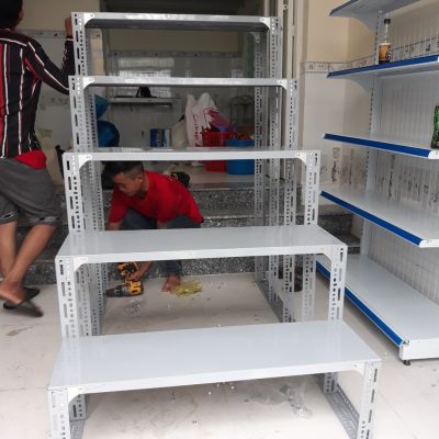 Thi công lắp đặt kệ sắt v lỗ cho doanh nghiệp, cửa hàng, kho với số lượng lớn.